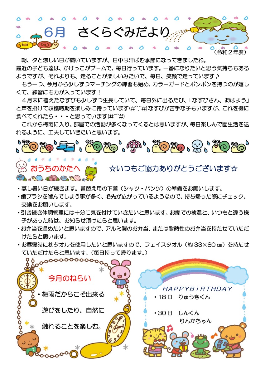 2020年度 クラスだより